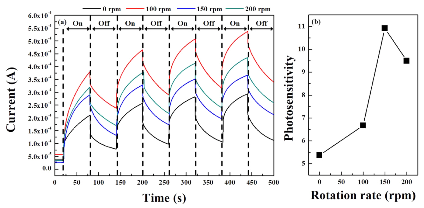 precursor solution at 150 rpm exhibited the highest photosensitivity. As a result,