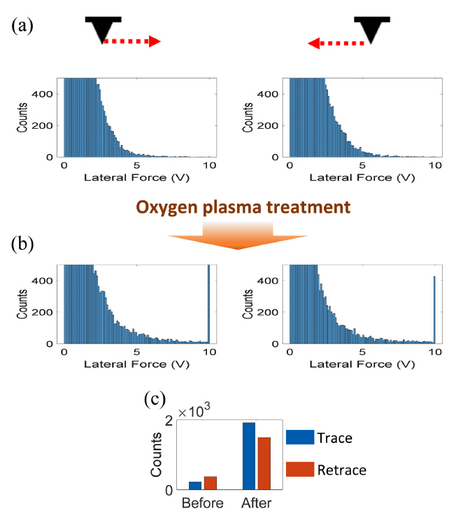 LFM signal level (10 V) increased significantly after the oxygen plasma treatment.