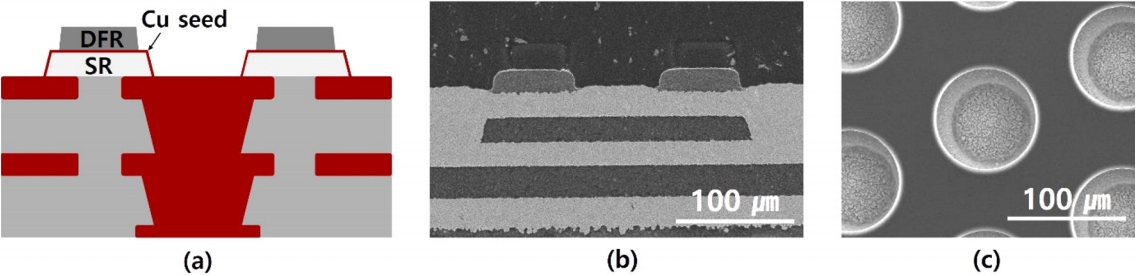 A sample was prepared by adding seed sputter deposition and DFR (dry film resistor)