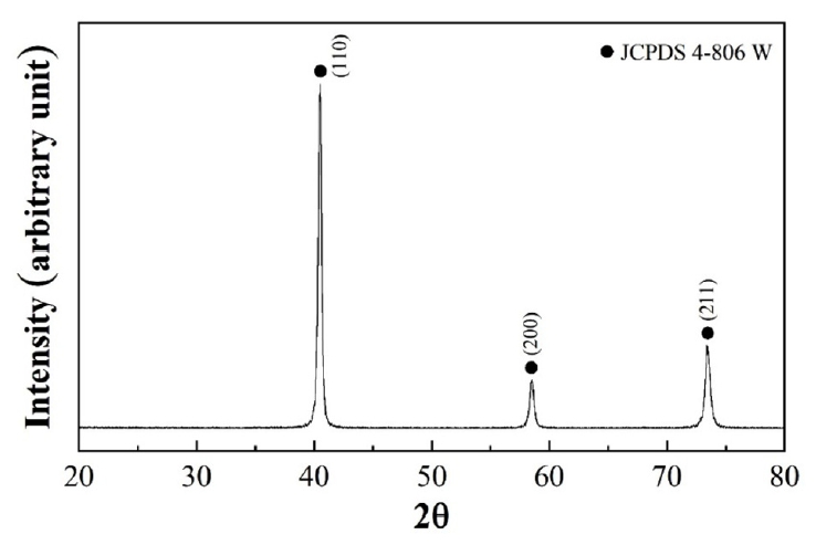 약 15 mm 및 4.5 mm의 디스크 형태로 제조하였으며, 비교를 위해 평균 입도 1.22 μm의 상용 W 분말(순도 99.9%, Taegu Tech,