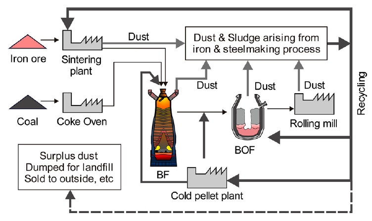 있으며 [2], 그림 1에는 제철소에서 발생하는 더스트의 흐름도를 모식적으로 나타내었다 [3].