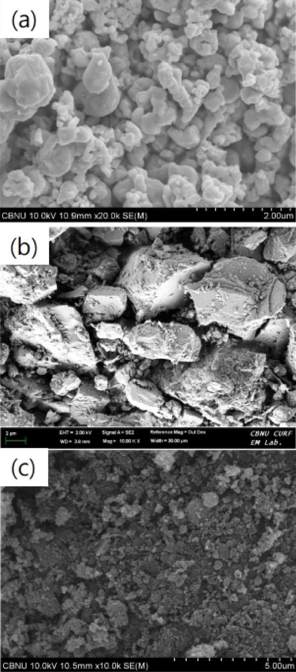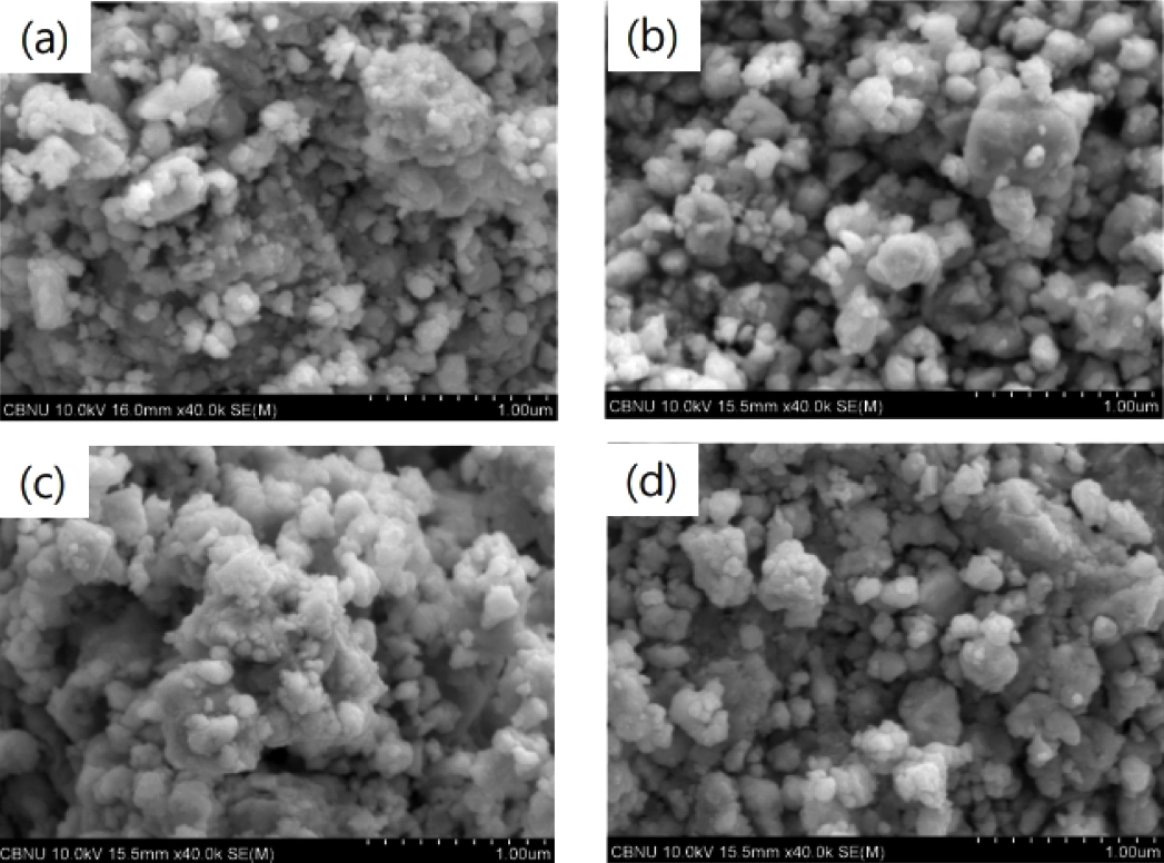 그림 5에서 보듯이 밀링한 분말들은 서로 응집되어 있고, 미세해졌음을 알 수 있다.