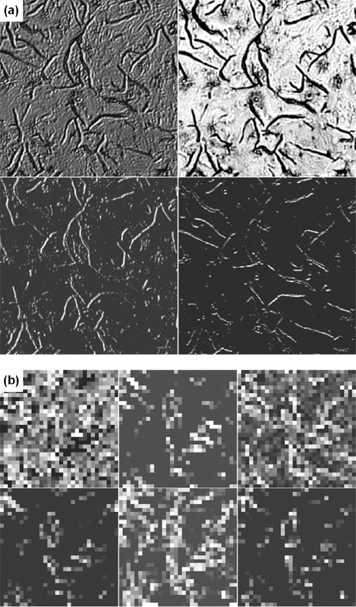 Fig. 4(b). The size of the images was 255 × 255 pixels for (a), and 30 × 30 pixels for (b).