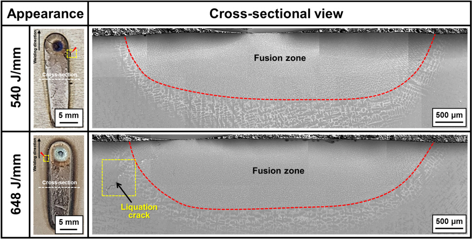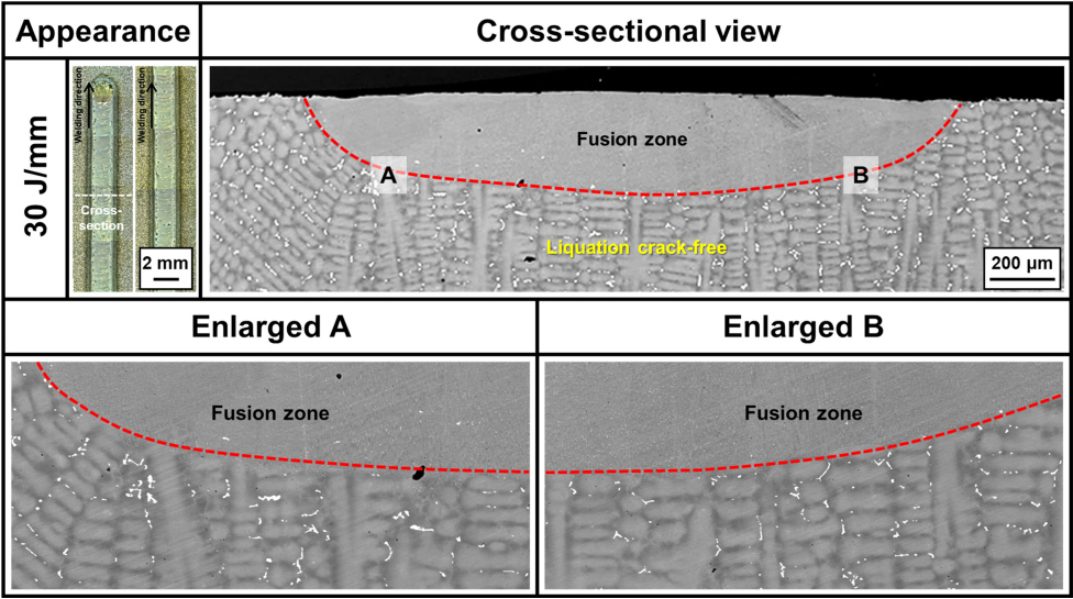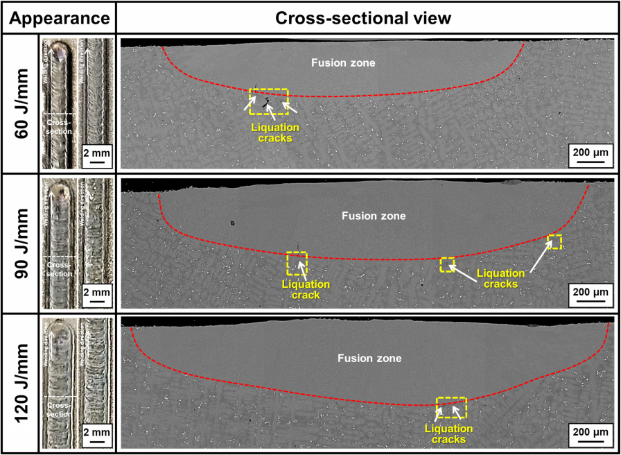 LBW 시의 입열량은 540–756 J/mm, 30–120 J/mm 의 범위에서 설정하였다.