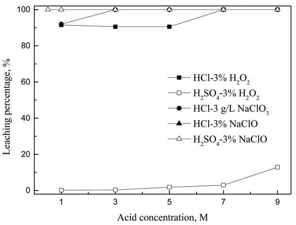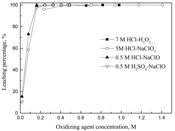 Effect of acid concentration and the nature of oxidizing agents on the leaching of