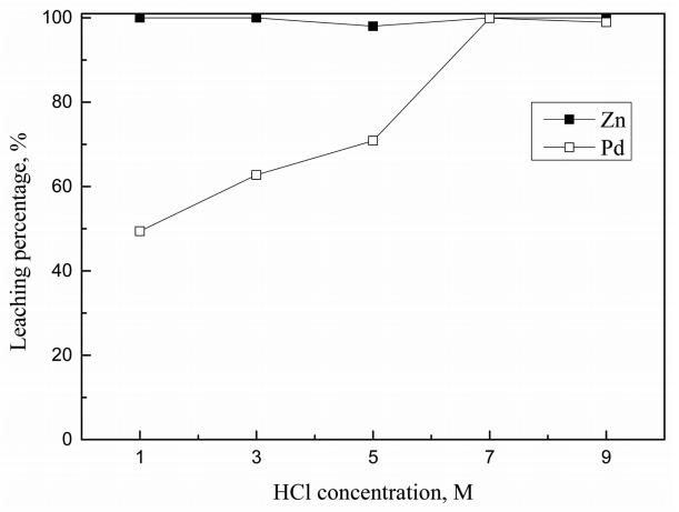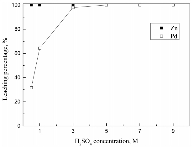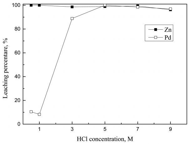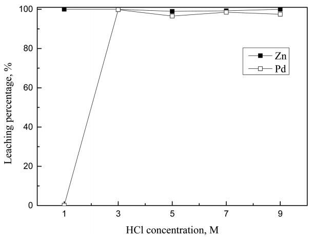 Effect of acids concentration on the leaching of Pd and Zn from the metallic mixture