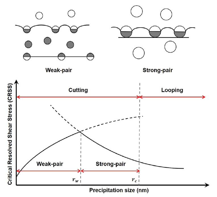 shear stress, CRSS)이 달라지며, 이를 weak-pair (약 쌍), strong-pair (강 쌍), Orowan 우회(looping)의