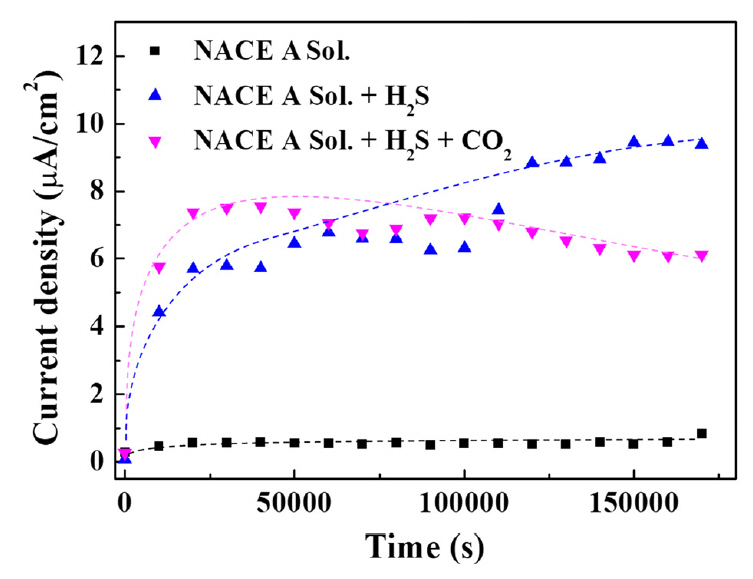 따라서, 본 연구에서는 NACE 규격용 실험용액을 기반으로, 미량의 H2S가 포함된 조건과, H2S와 함께 CO2가 복합적으로 존재하는 각 조건에서의 부식거동과 함께 부식 반응에 의해 생성된 수소원자의 침투거동을 비교·분석하여 메커니즘을 해석하고자 하였다.
