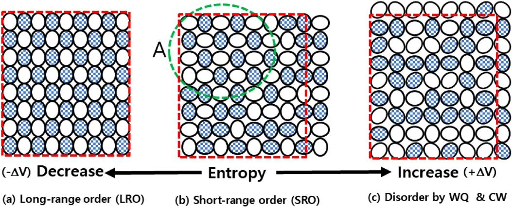 Concept of ordering vs entropy variation in A and B (A:B=1:1) alloy.
