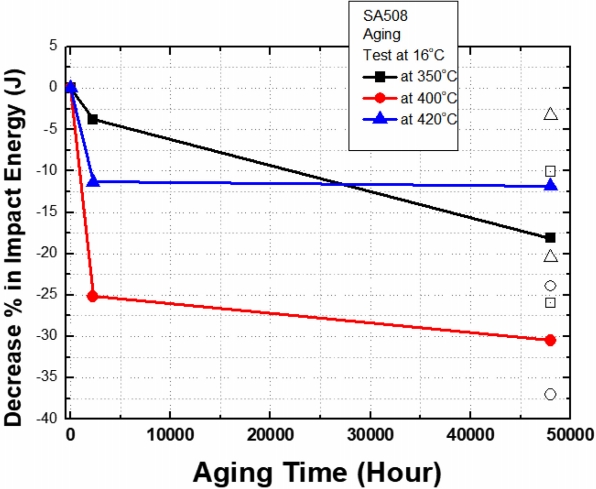 따라서 본 연구는 한국의 경수로 RPV 재료의 하나인 SA508을 원자로 가동 온도보다 높은 온도에서 열적 처리(thermal embrittlement)하여