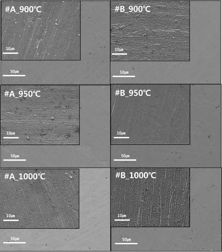 of AISI 439 ferrite stainless steel samples are illustrated in Table 1, with (#A) containing 17 wt.% Cr and stainless alloys (#B) containing 15 wt.% Cr,