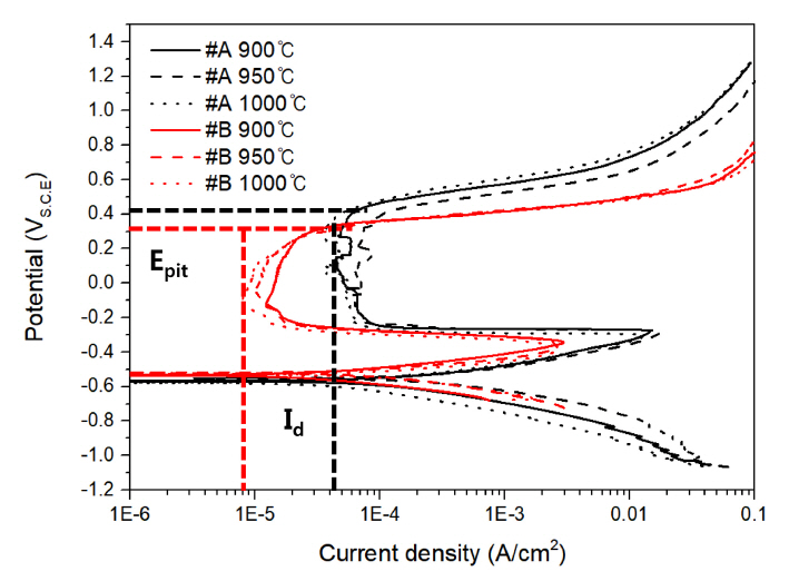 the value of the pitting potential, a major corrosion resistance indicator of stainless