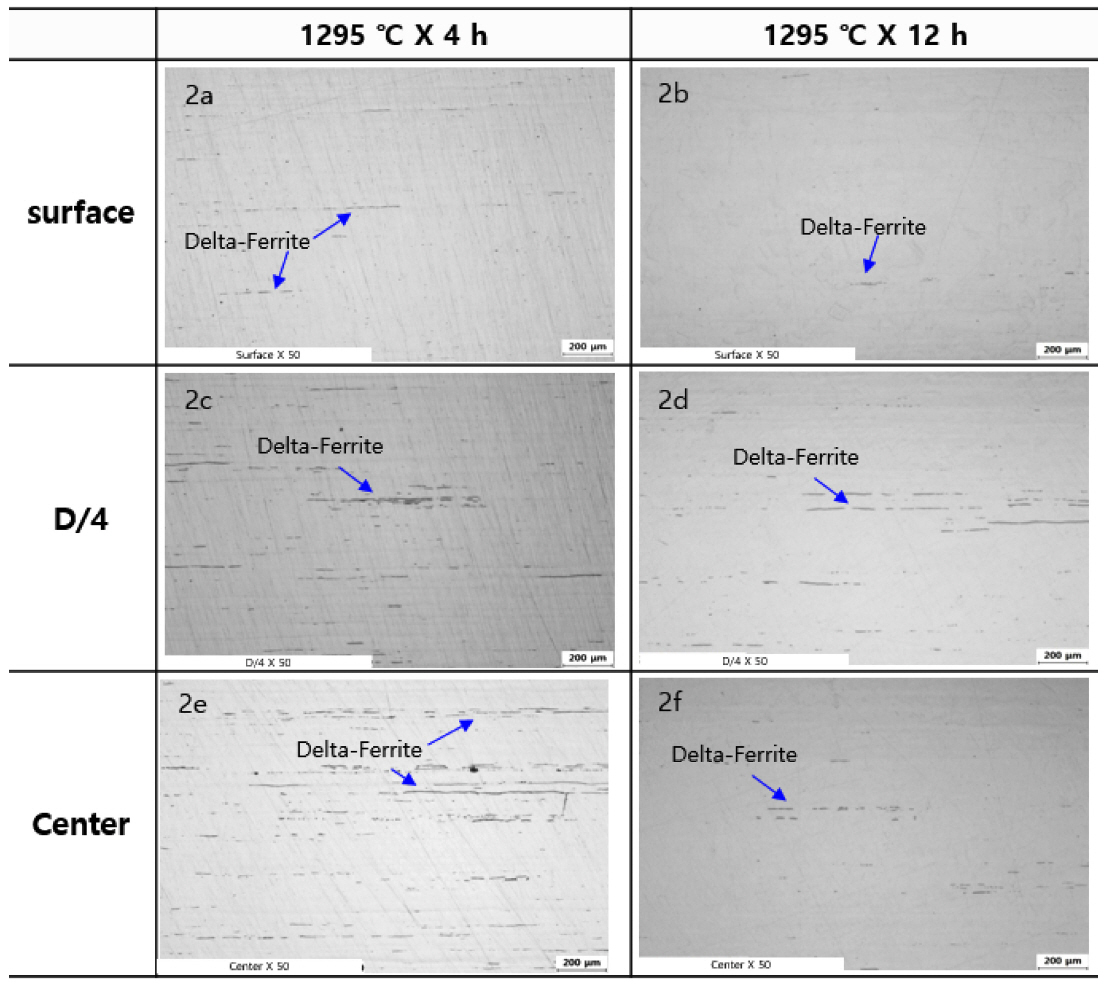 were performed to confirm the effects of delta-ferrite. Delta-ferrite was also analyzed