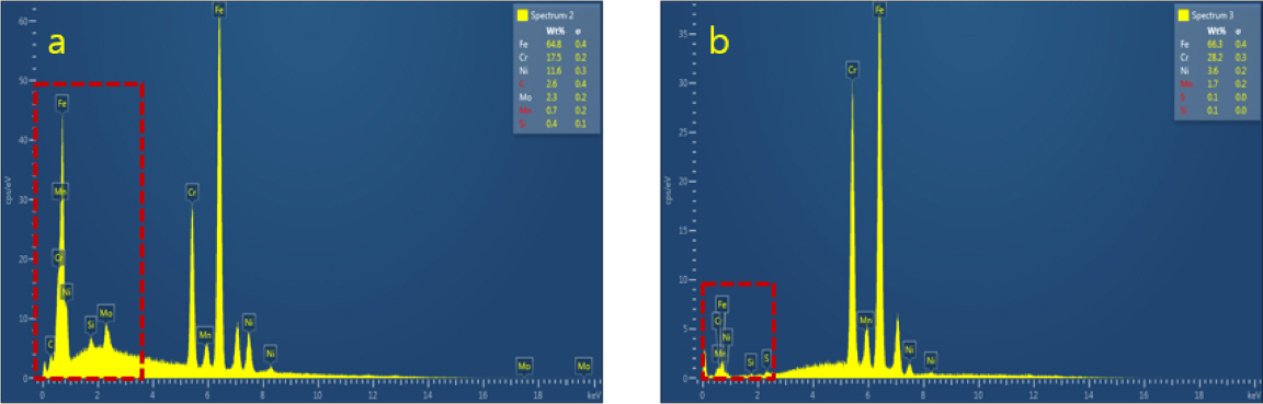 Delta-ferrite component changes according to EDS analysis.