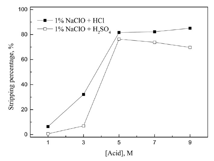 아연(II)의 농도는 각각 0.1과 0.5 g/L로 고정했으며 황산과 추출제 농도를 변화시켜 금속의 추출거동에 미치는 영향을 조사했다. 한편 도금폐액에서