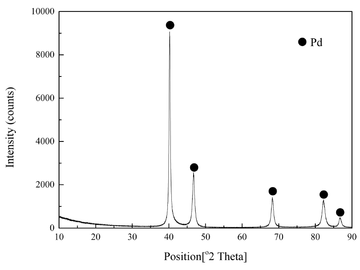 XRD pattern of the cemented palladium obtained from spent electroplating solutions.