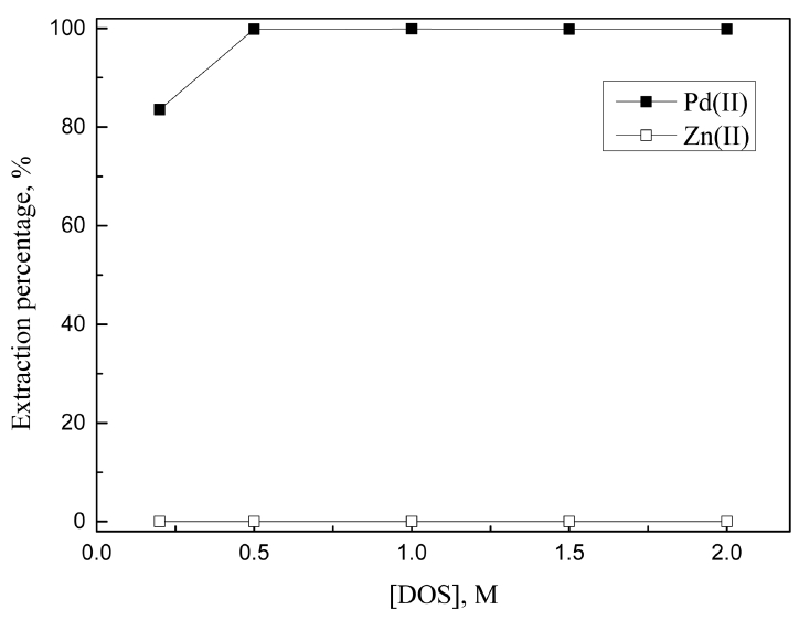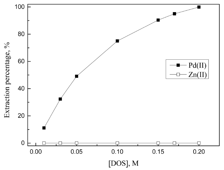 Effect of DOS concentration on the extraction percentage of Pd(II) and Zn(II) from