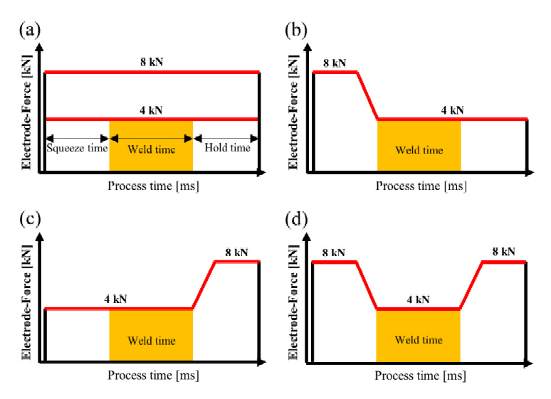 Continuous electrode-force 4 kN, Post-electrode-force 4-4-8 kN