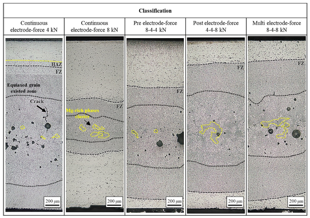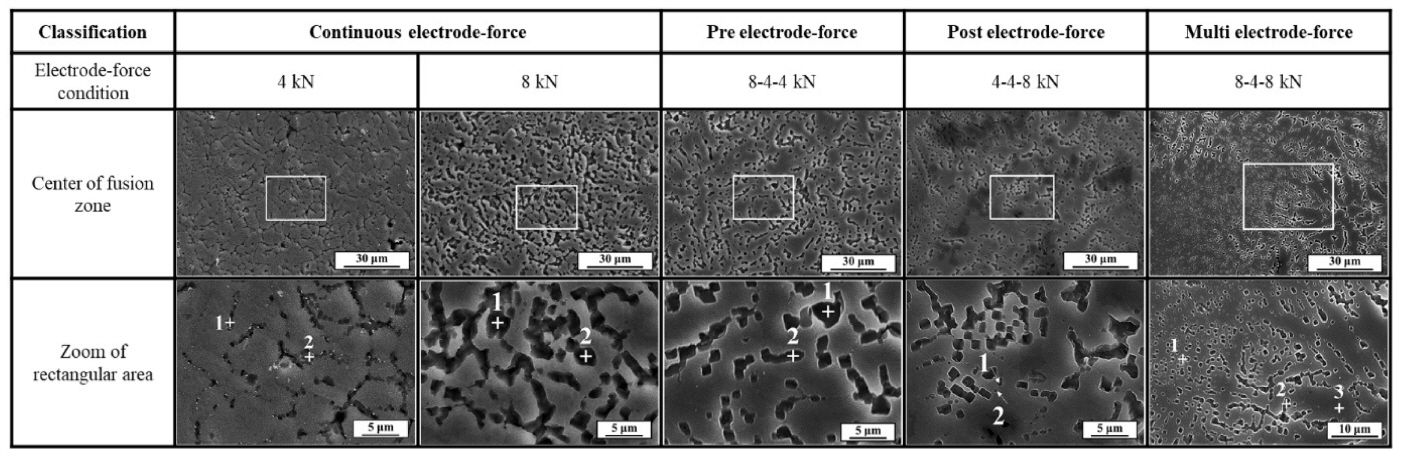 Microstructure of fusion zone performed with various electrode-force control types: