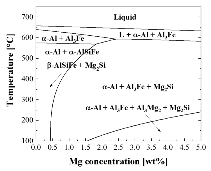 Equilibrium phase diagram of Al 5052 alloys (JMatPro software).
