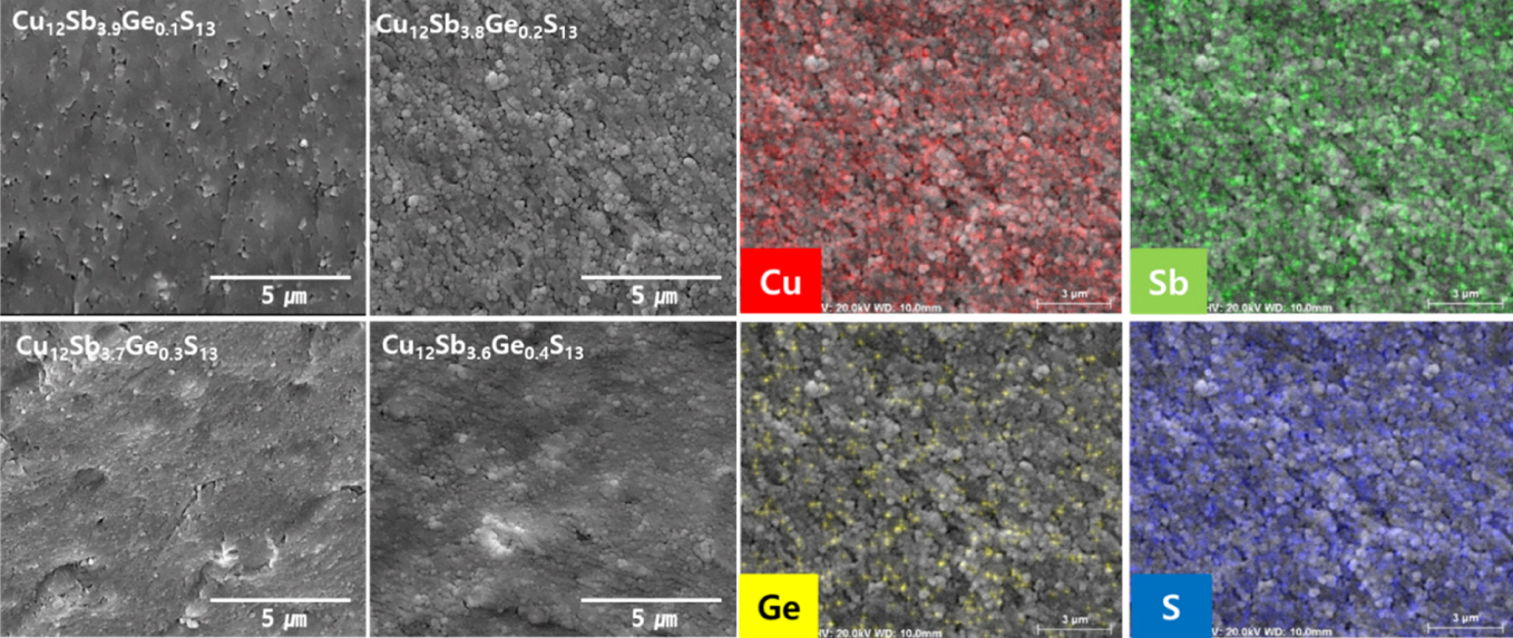 maps for Cu12Sb3.8Ge0.2S13 confirmed that every element was homogeneously distributed.