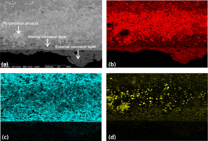 달리 부식실험에서는 조직 내부의 Pb 이온이 빈 공간으로 이동과 환원할 수 있는 분위기로 전환되지 않아 Pb 계열 부식생성물 형성에 어려움이 있는