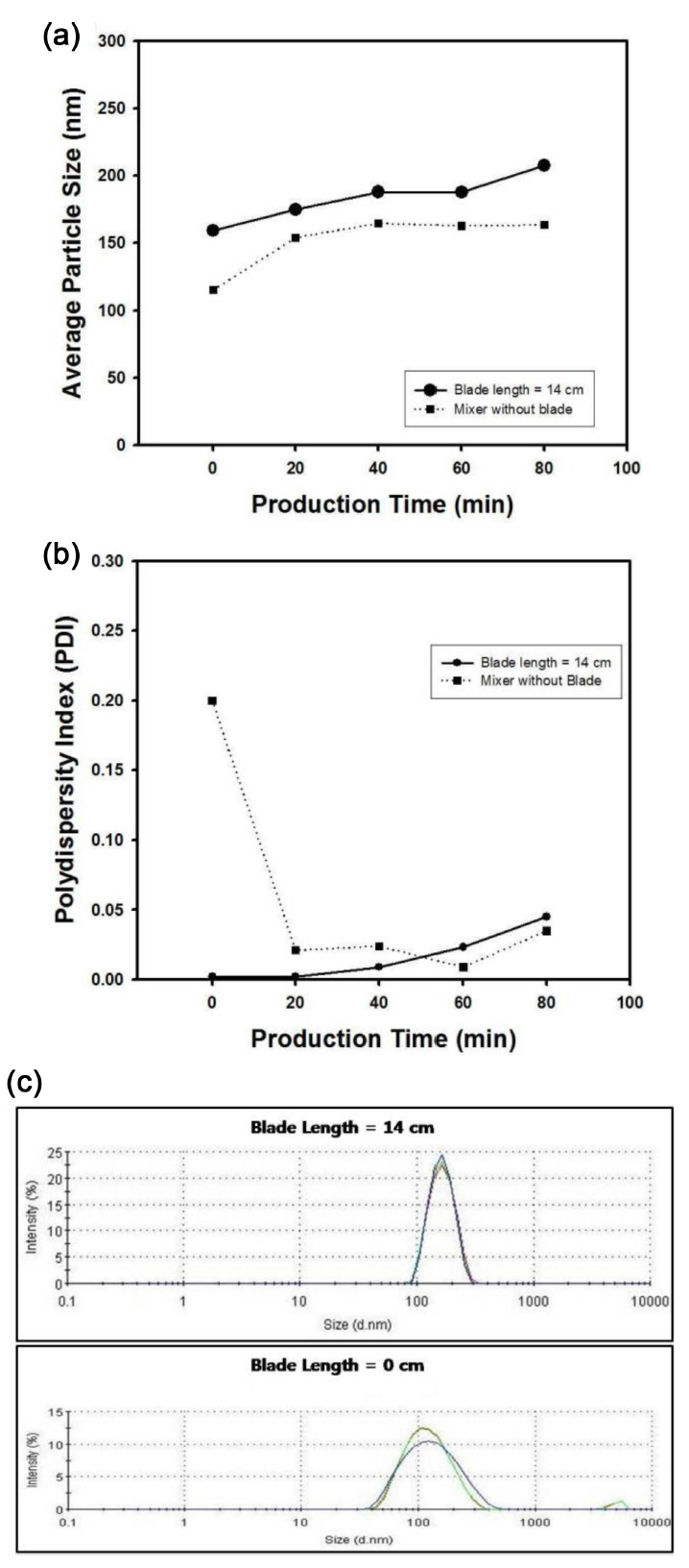 Figure 8(c) contains the size distribution of silica particles synthesized with or without blades