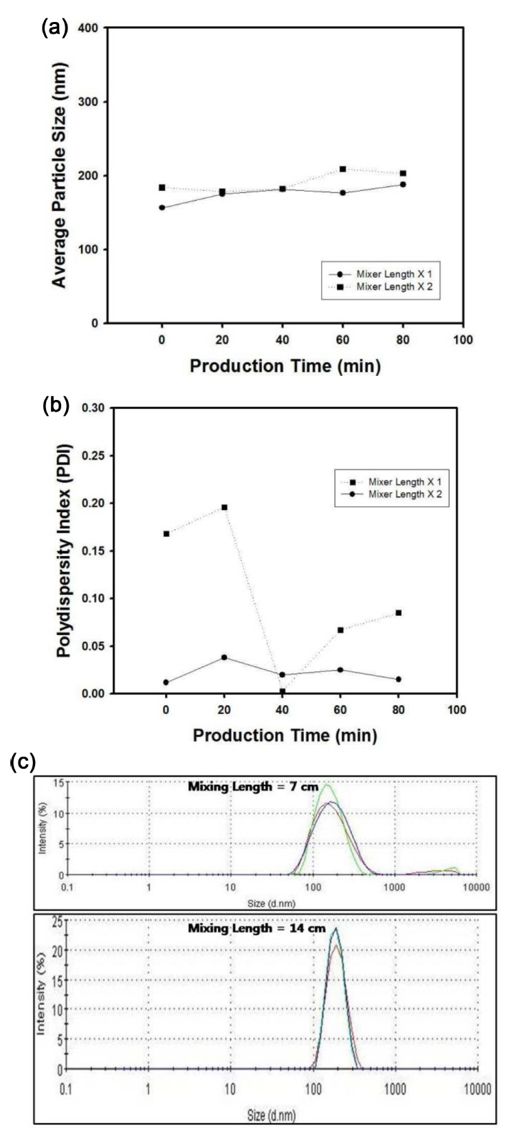 under the same synthesis conditions, longer mixing length of T-mixer will cause more