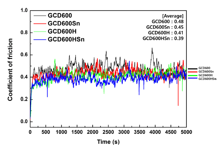the GCD600HSn sample exhibited the largest average friction coefficient value. Similarly,
