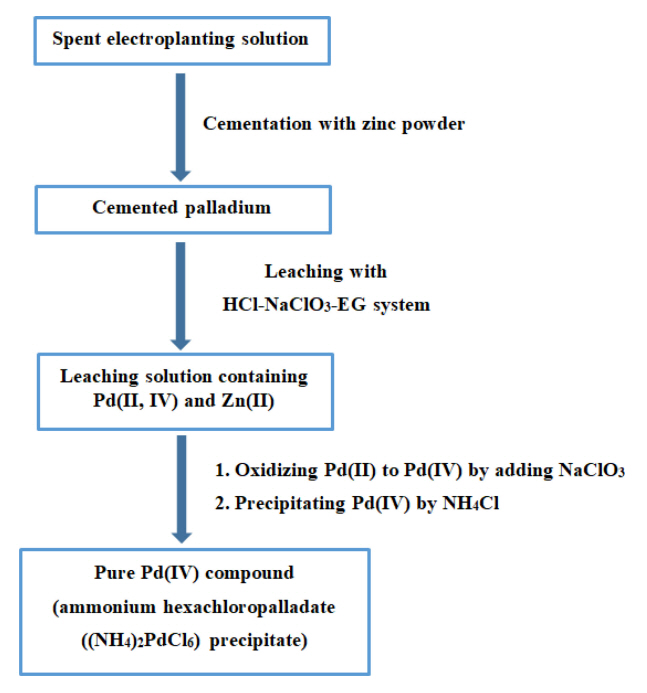 concentrate the Pd(II) by cementation with zinc (Zn) powder [13,14]. Leaching of the cemented Pd metal is then required to recover the pure Pd metal.