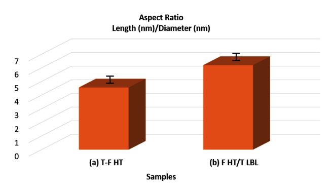 Aspect ratio of samples (a) T-F HT sintered at 550 °C for 2 h with additional heat