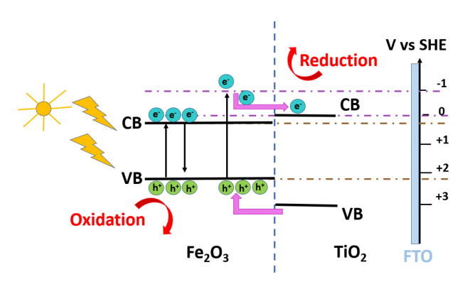 that affect the photocatalytic behavior of Fe2O3/TiO2/FTO. Surprisingly, the design of a new photoanode demonstrates excellent photocatalytic