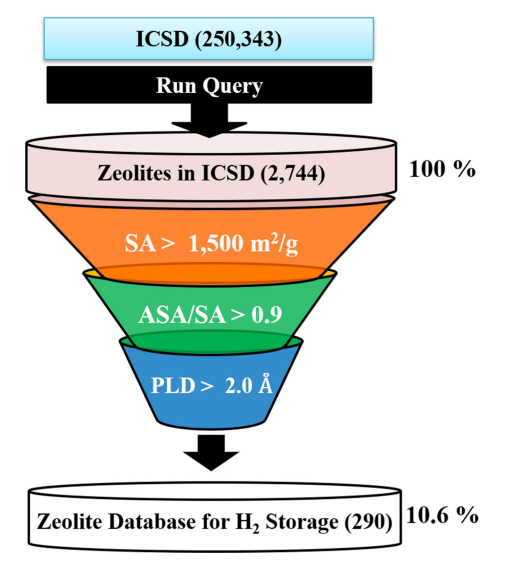ICSD에 저장된 제올라이트 수가 2,744 개에 이르는데 모든 제올라이트를 실험실에서 직접 합성하여 수소 저장에 적합한 소재인지를 탐색하기에는 시간적으로