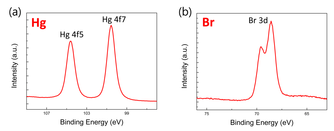 In addition, the orbital binding energies of Hg 4f5, Hg 4f7, Br 3d peaks were featured