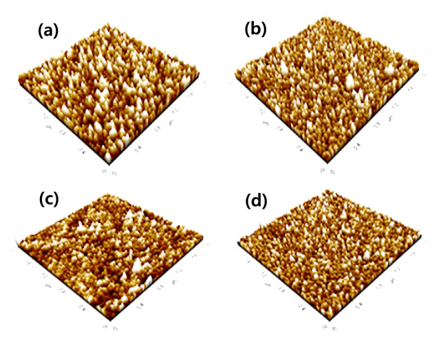 be due to an enlarged grain size, as shown in Table 1, and the flat surface observed in AFM images.