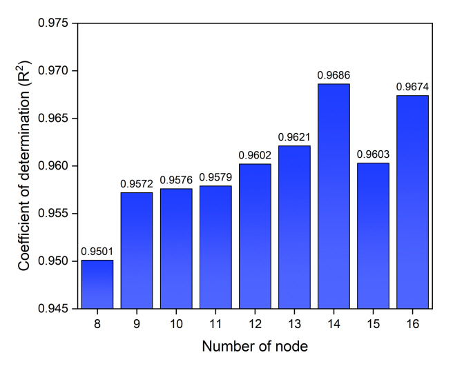 Coefficient of determination according to the number of nodes.