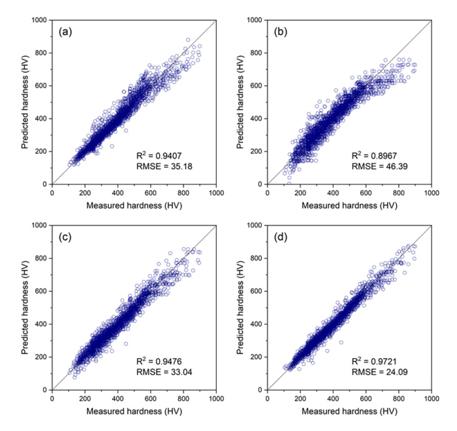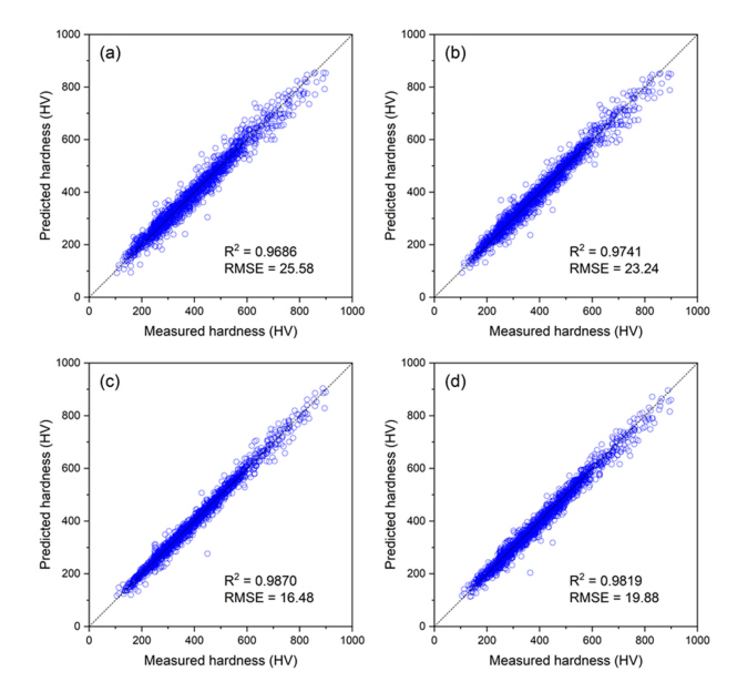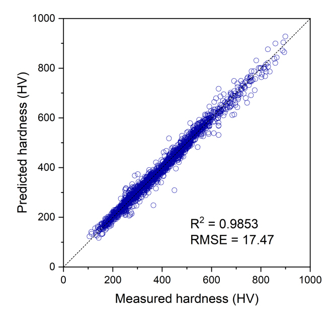 Predicted hardness of tempered martensite by using the tailored neural network model