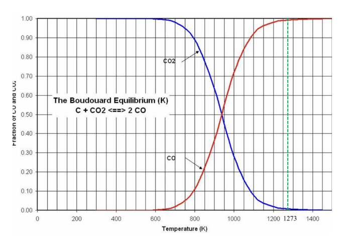 따라서, 1273 K에서 반응 2, 반응 3에 의해 생성된 CO2 분압은 약 K-2.44×10-3 atm이다.