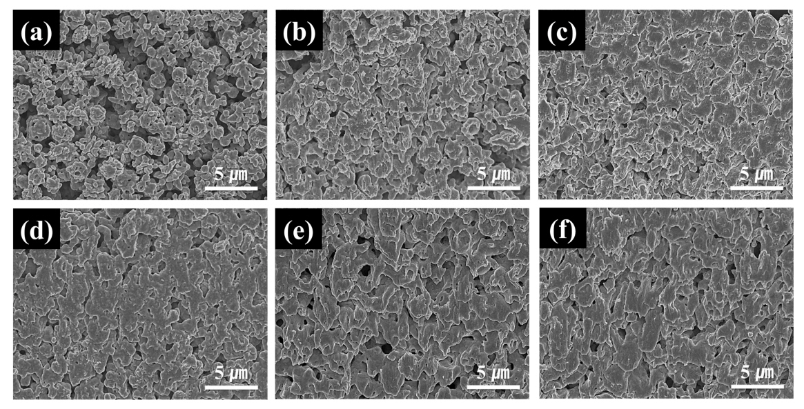 for 10 s at (a-c) 250 °C and (d-f) 300 °C: (a, d) 0, (b, e) 30, and (c, f) 60 min.