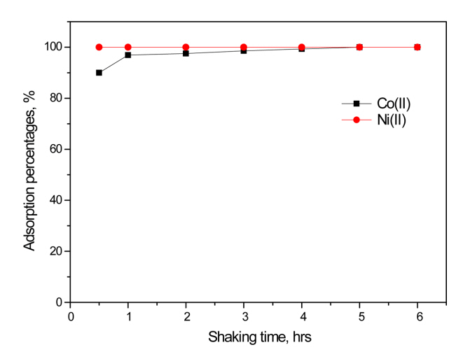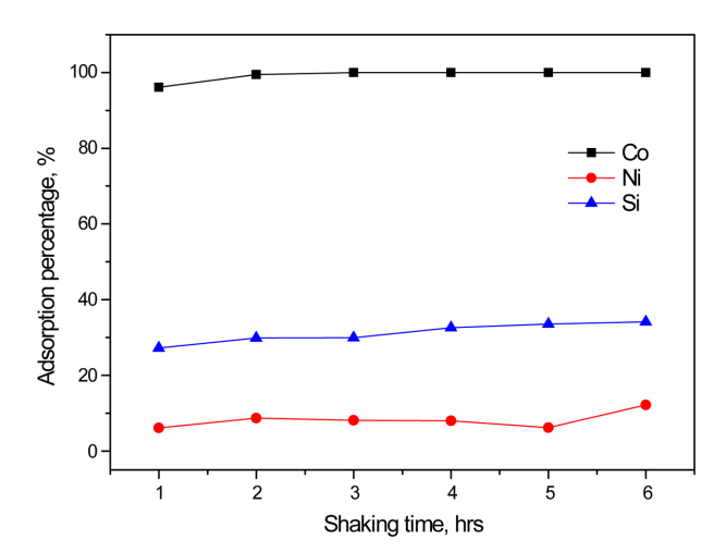 Effect of shaking time on the loading of Co(II), Ni(II), and Si(IV) into the modified