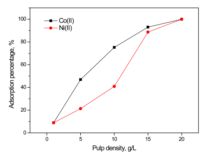 Effect of the pulp density of Purolite C100 resin on the loading of Co(II) and Ni(II)
