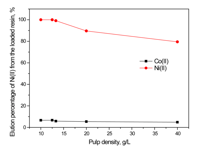 Effect of the pulp density of the loaded Purolite resin on the elution of Co(II) and