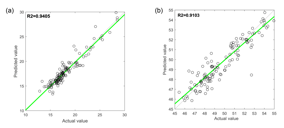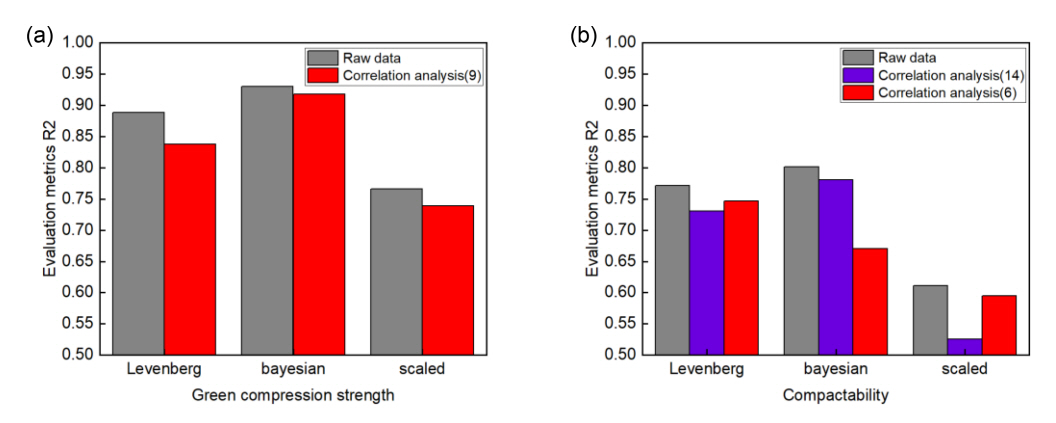 transformation (a) green compression strength prediction model, (b) compactability