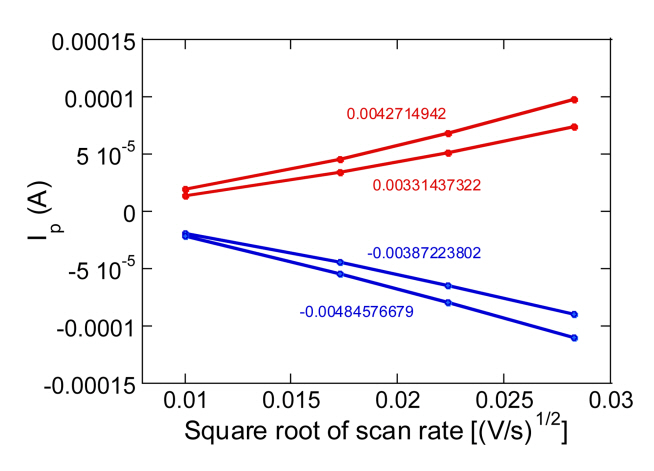 Plot of peak current as a function of scan rate.