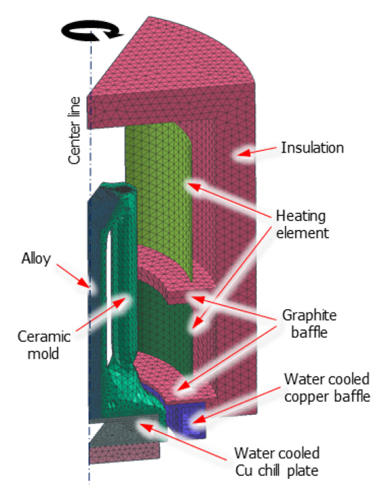열 전달 매커니즘은 전도, 대류, 복사 세가지로 알려져 있으나, 6×10-6 torr 수준의 진공 분위기에서 열전달은 전도와 복사가 지배적인 매커니즘으로 작용한다. 진공 속에서 이루어지는 일방향 응고 공정 중, 합금에서 이루어지는