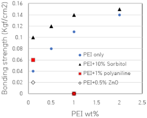 Bonding strength versus PEI concentration and additives.