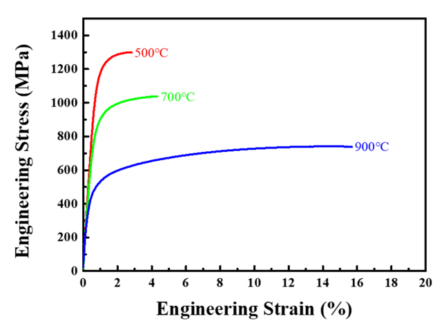 구체적으로, Ni을 대체한 경우 XRD 결과에서 다량의 시그마 상의 형성이 발생하여 강도의 증가가 발생하나 연성이 크게 감소하는 것으로 사료된다[17]. Co를 대체한 경우, FCC이외에 BCC 상의 형성이 나타나고 이러한 BCC는 상대적으로 강하여 높은 강도를 나타내는 것으로 여겨진다 [17]. 특히, Ni를 Cu로 대체한 경우 항복강도가 691 MPa로 가장 높게 측정되었으나 다른 합금들과 비교했을 때 연신율이 비교적 낮게 나타났다.