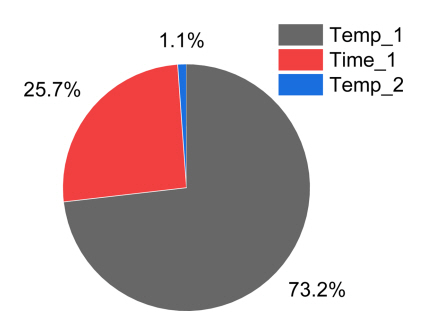are shown in Fig 10. According to Fig 10, Temp_1 shows a distribution of 73.2%, Time_1 shows 25.7%, and Temp_2 shows 1.1%.