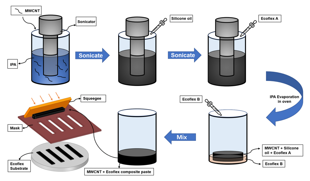 <10 μm, APPLIED CARBON NANO Co.)와 Ecoflex를 사용하여 제작되었다. Ecoflex 00-50(Smooth-On, Inc.,