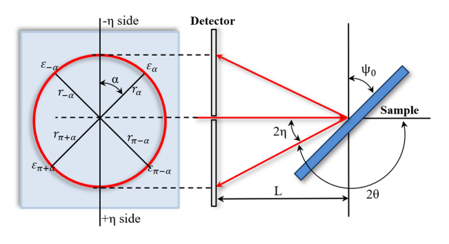 Four strains obtained according to angle α in the Debye-Scherrer ring.